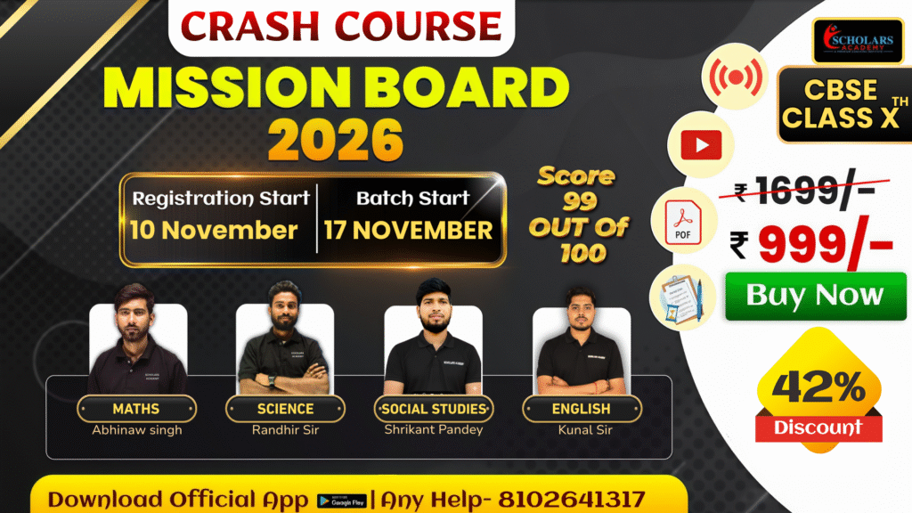 Crash Course for Class 10 covers Maths, Science, SST, and English with all key chapters and formulas.